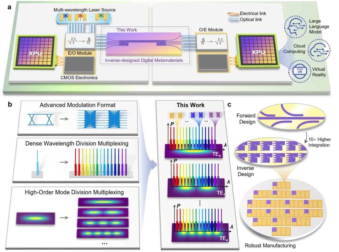 日前,复旦大学信息科学与工程学院张俊文研究员、迟楠教授与相关研究团队开展合作,通过精确设计和优化,将多维复用技术引入片上光互连架构,不仅显著提升了数据传输吞吐量,同时在功耗和延迟方面表现卓越,具备极强的扩展性和兼容性,适用于多种高性能计算场景。